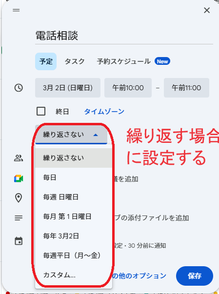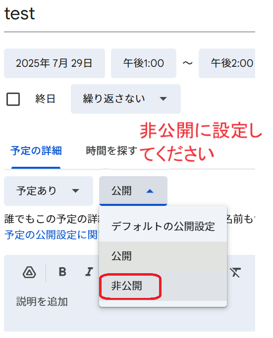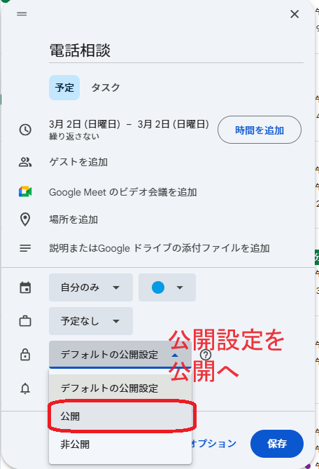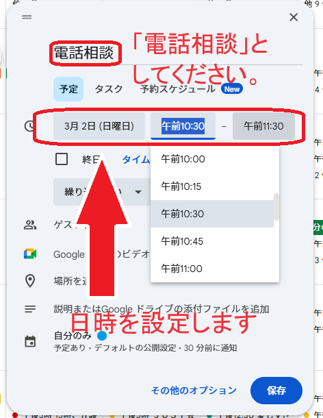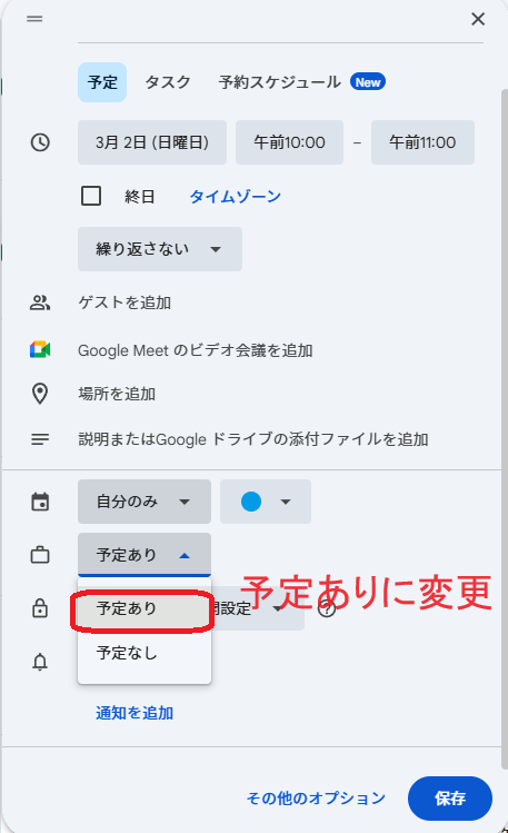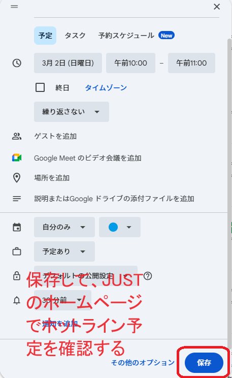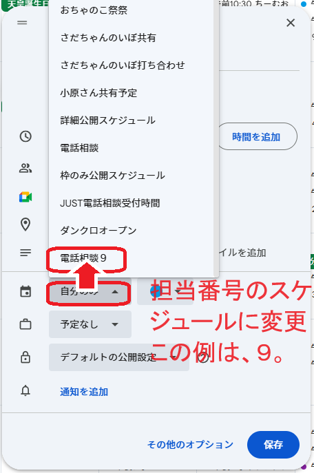 ご自身のGoogleカレンダーにて操作