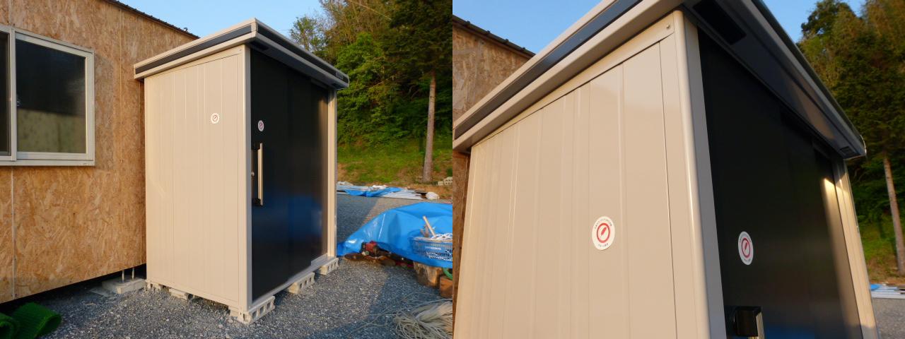 そこで、新しい頑丈な倉庫を購入し、小屋っこの裏側に設置しました。設置に際しては、少しでも現地の経済復興に資するように、現地で被災したご企業に発注しました。