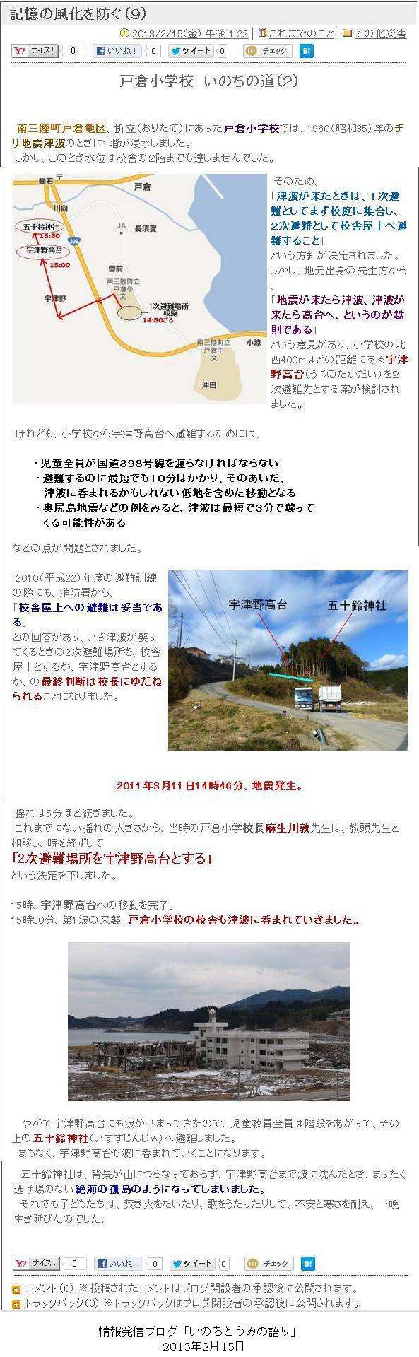 そこで私たちJUSTでは、活動ブログ「いのちとうみの語り」を発災後1年半から作成し、被災地と関係がなかった人々にもよくわかるように心がけながら、南三陸町戸倉地区の情報を発信しています。